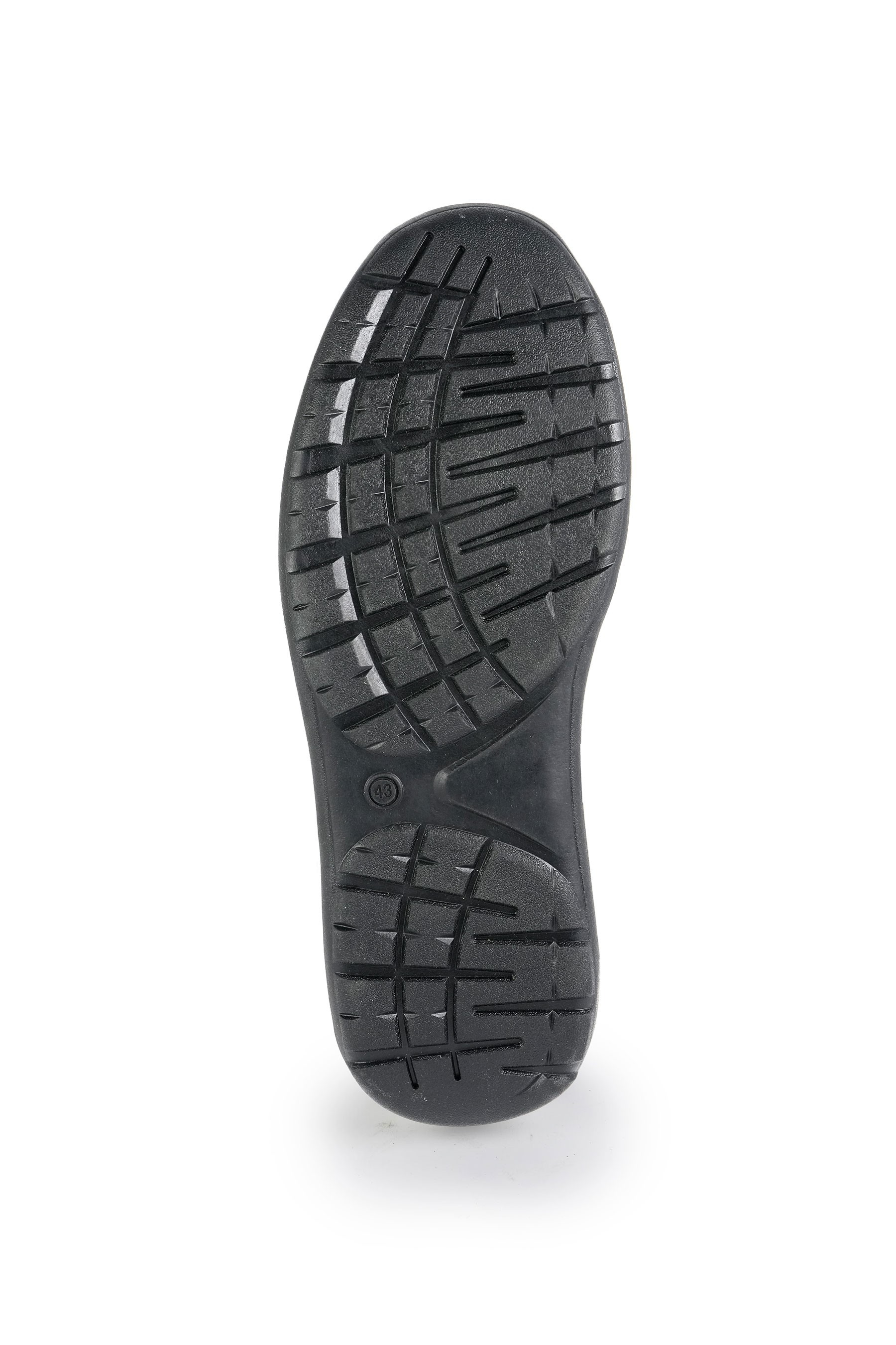 - النعل الخارجي للحذاء مصنوع من طبقتين طبقة من البوليوريثين المخفف وطبقة سفلية من المطاط لمقاومة الانزلاق ولخطوة مريحة.