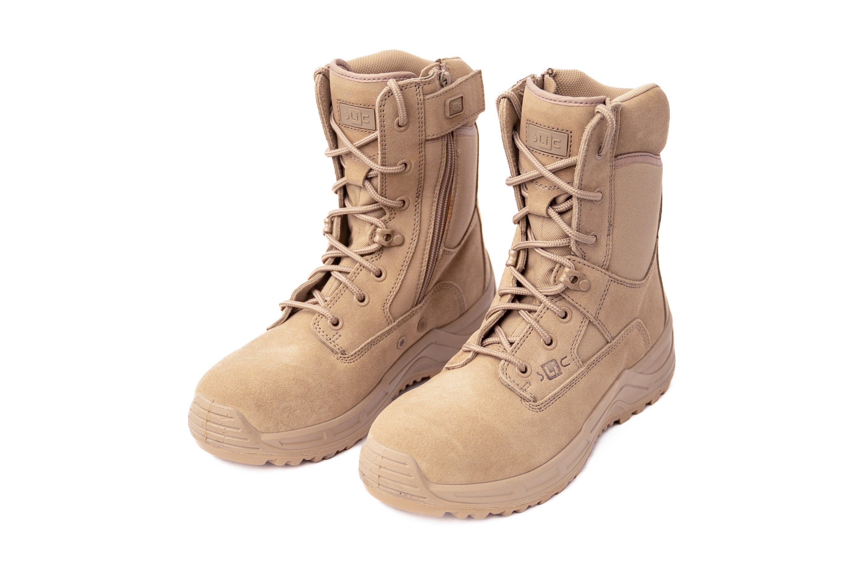 تم تصميم حذاء الصحراء طراز 54704 ليوفر الثبات والمتانة في البيئات الصعبة. يجمع بين الجلد السويدي الطبيعي ونايلون متين في الجزء العلوي، ويأتي مزودًا بست عيون معدنية مقاومة للصدأ، بالإضافة إلى حلقة سرعة وربّاط، وسحّاب جانبي YKK مغطى بلسان حماية لسهولة وسرعة الاستخدام.